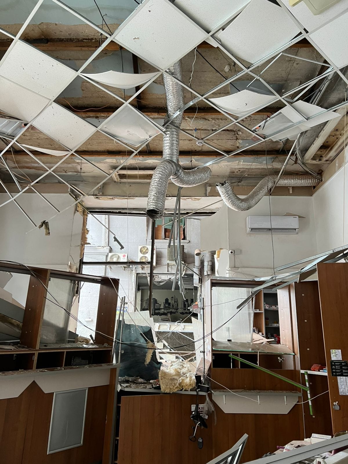 Кураторка Яна Стрілець згадує, що вибух стався раптово. Потужна хвиля вибила двері та вікна, стеля обвалилася, повітря наповнилося пилом і запахом гару. Металеві конструкції й шафи падали разом із коробками ліків. За лічені секунди простір, у якому ще мить тому тривала звичайна робота, перетворився на руїну.