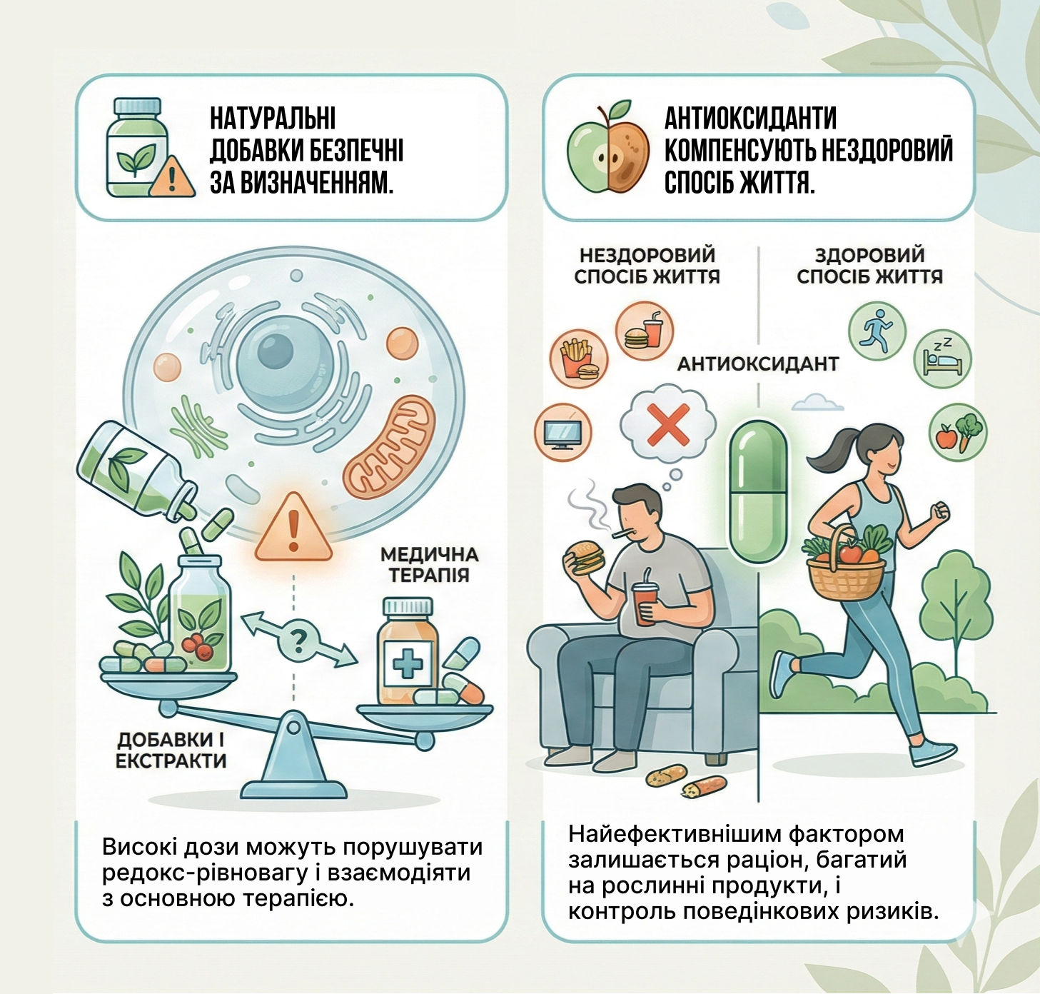 Фармацевтам важливо розуміти, що оксидативний стрес — це не лише про біохімію. Необхідно розуміти самим і пояснювати пацієнтам, що антиоксиданти не дають універсального захисту, а фармакотерапія повинна доповнювати, а не замінювати фізіологічні механізми.