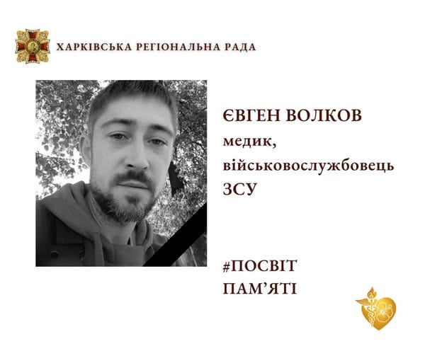 Євген Волков пішов на війну ще до повномасштабного вторгнення. Як начальник медичного пункту він організовував порятунок військових на передовій. У 2023 році загинув внаслідок ракетного удару. Йому було 35.
