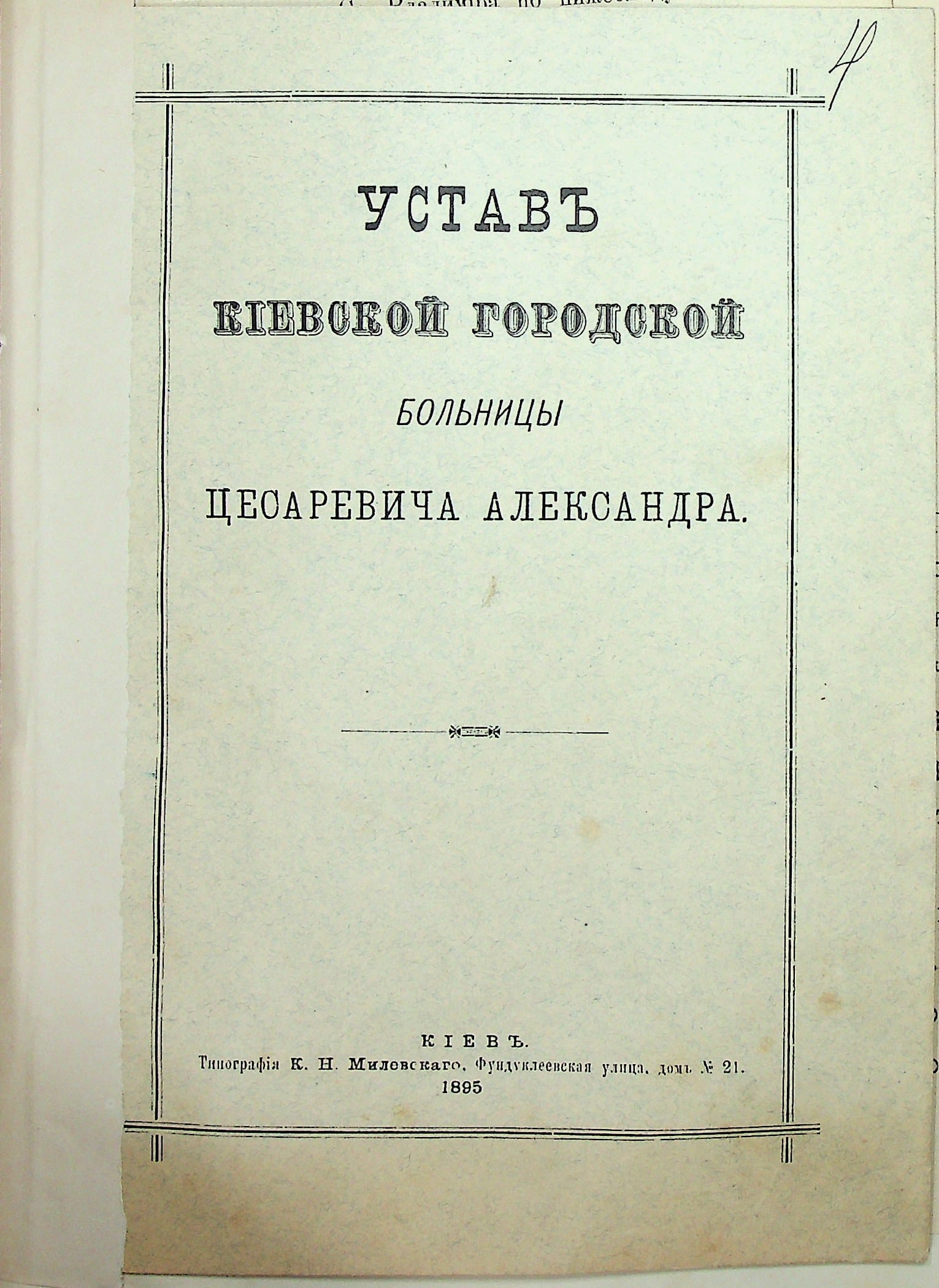 Лікарня відкрилася у 1875 році та отримала назву на честь одужання цесаревича Олександра. У той час вона складалась із двох дерев’яних бараків на 65 ліжок, де кияни могли отримати стаціонарну, амбулаторну, а до 1902 року ще й швидку допомогу.